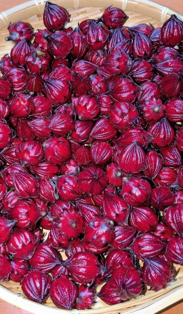 この日に採ったローゼルはまだ冷蔵庫にあるというのに、また今朝もこのくらい収穫してしまいました😱