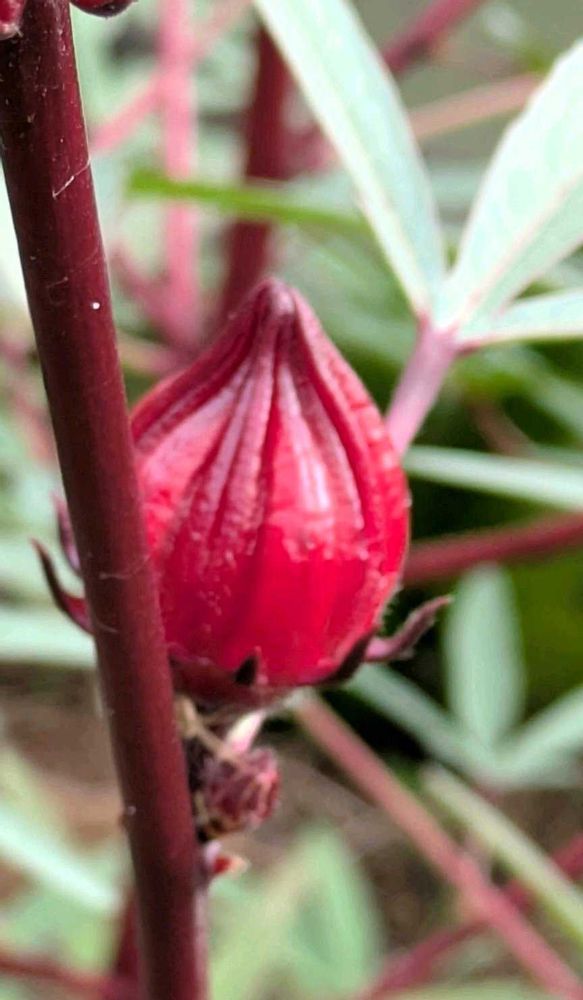 ①小雨の中ローゼルの大粒のだけ採りました♥️