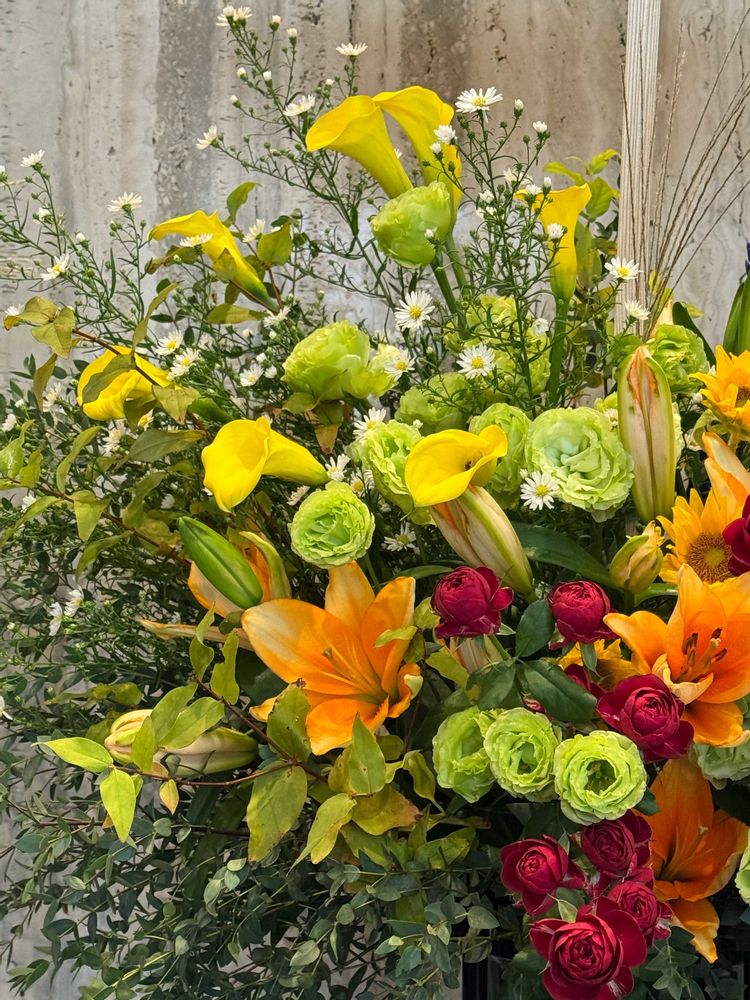 コンサート会場のスタンドフラワーのお花はユリやカラーの色合いにやる気をもらいました〜♪♪♪