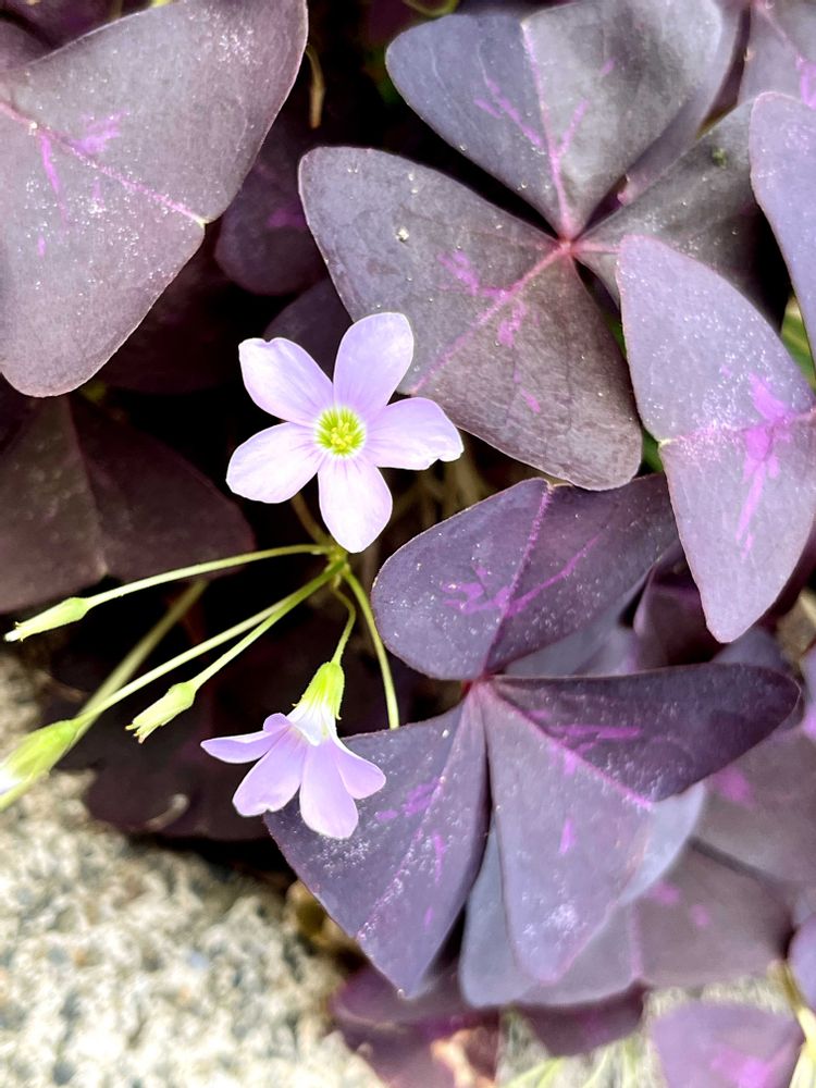 薄紫のお花にエンジ色の葉っぱ🍃…