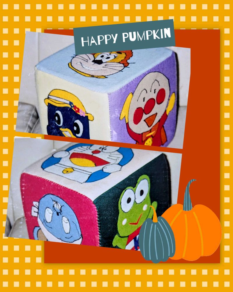 40cmのサイコロ状の箱を発泡スチロールで作り、フェルトで作ったキャラクターを縫い付けて遊ばせていたおもちゃです😆😆😆