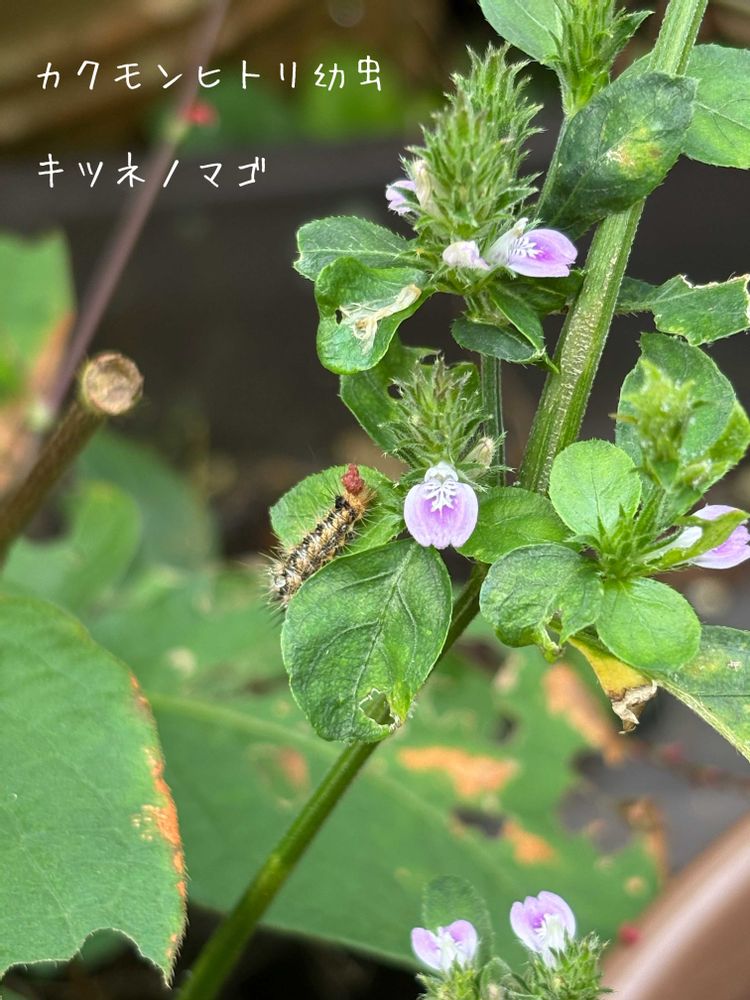 キツネノマゴに小さな毛虫が
