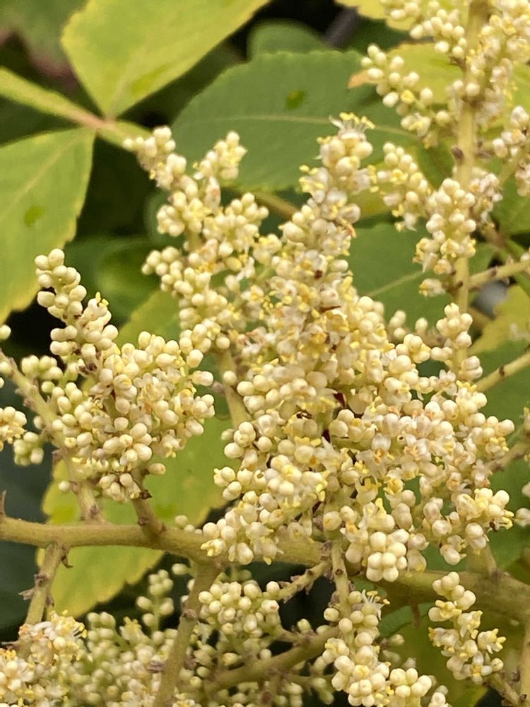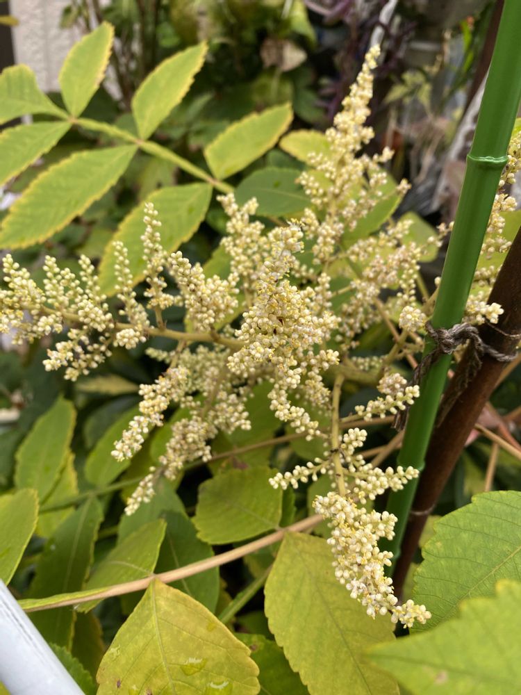 鉢植えだからか2021年に初めての花 今年二度目の花序が出来て小さな花が咲いてきました。
