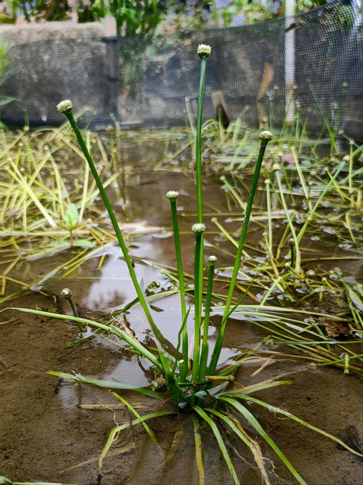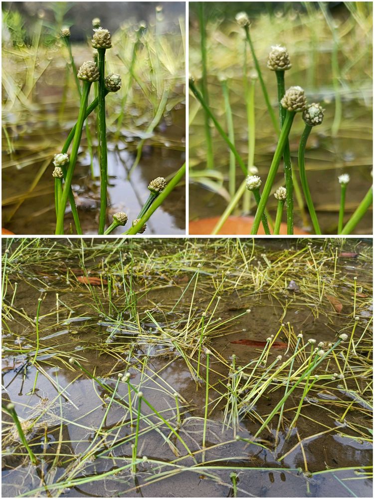 ため池の岸辺、湿った河原に生育。水中でも生育し、水深に応じて花茎を伸長させる。頭花は水面上に出ていないと結実しない。地下茎は短く直立し、倒卵状。葉は束生し、線形、先は鋭く尖る。花茎は多数ついて高さ10〜30cm。