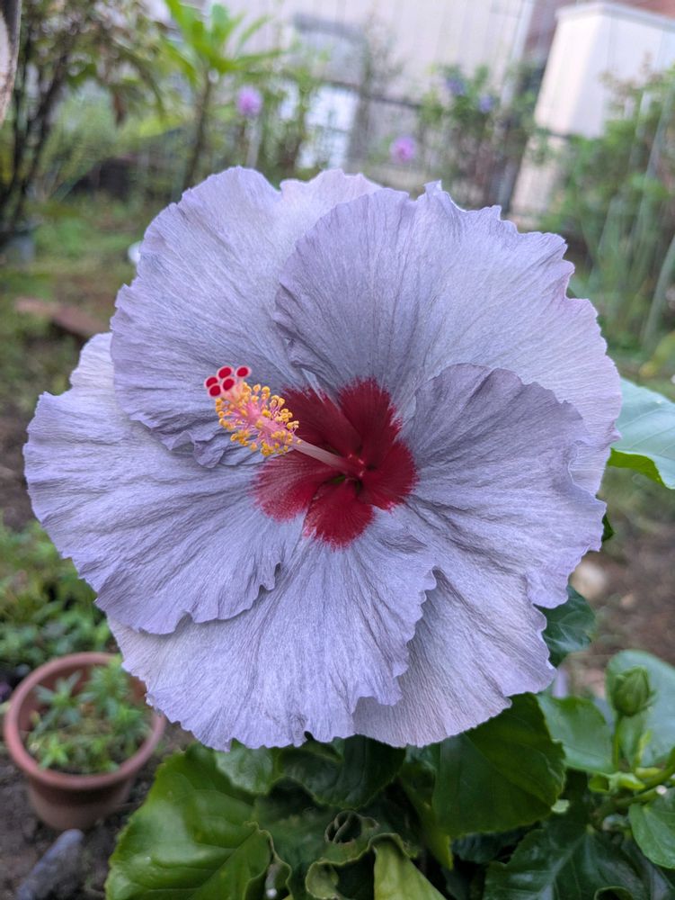 ハイビスカス デニムブルー 涼しくなって、二日目の朝も咲いています。