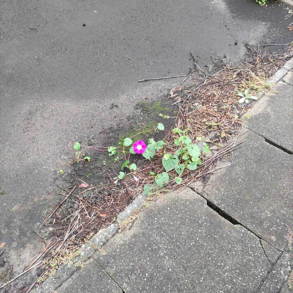 〈地道投稿〉おはようございます☀月(木)曜日はごみの日、自転車乗り集会所に出し🤩途中の空き家入口に「アサガオ」一輪咲いてました。気持ちがいいね👍️