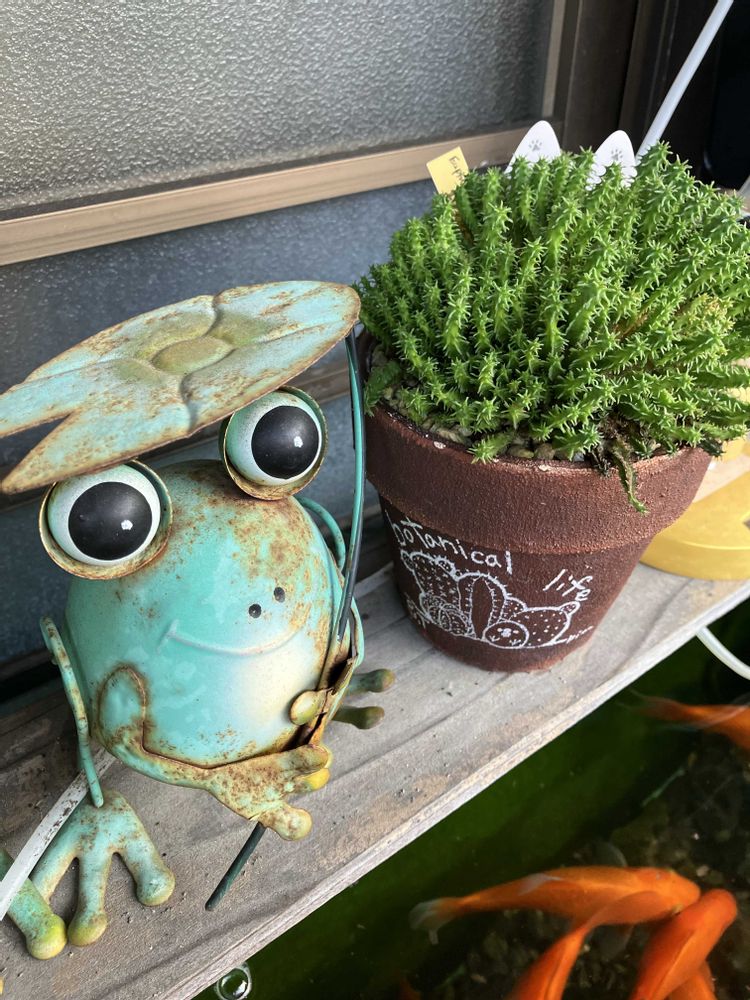 いや(笑)逆に鯉並みの金魚に狙われてる🐸かも🤣🤣🤣