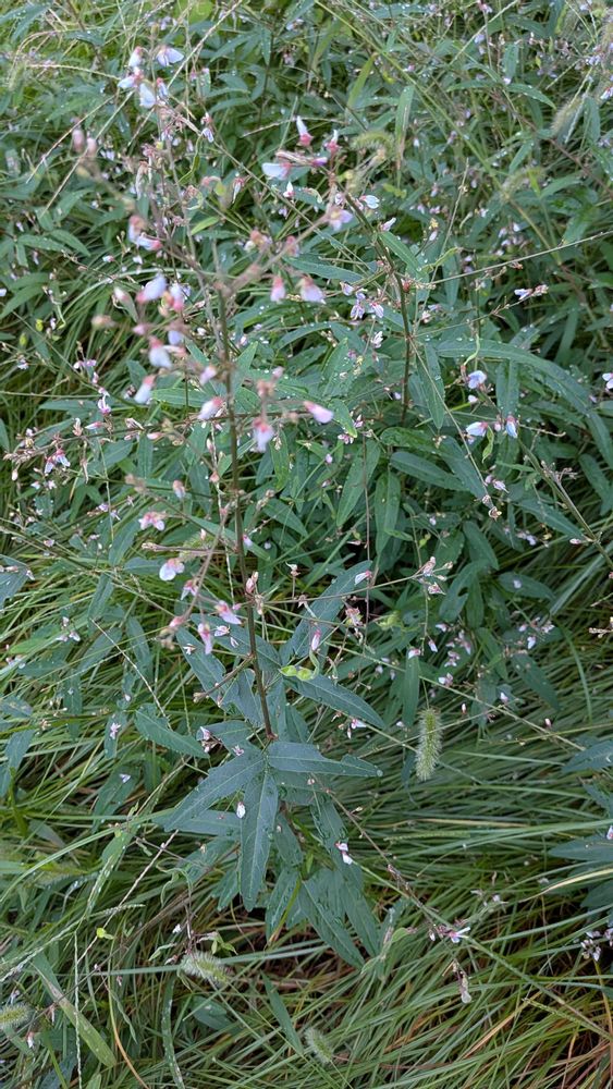 群生するオシロイバナの中にヒガンバナも一緒に咲いてます。