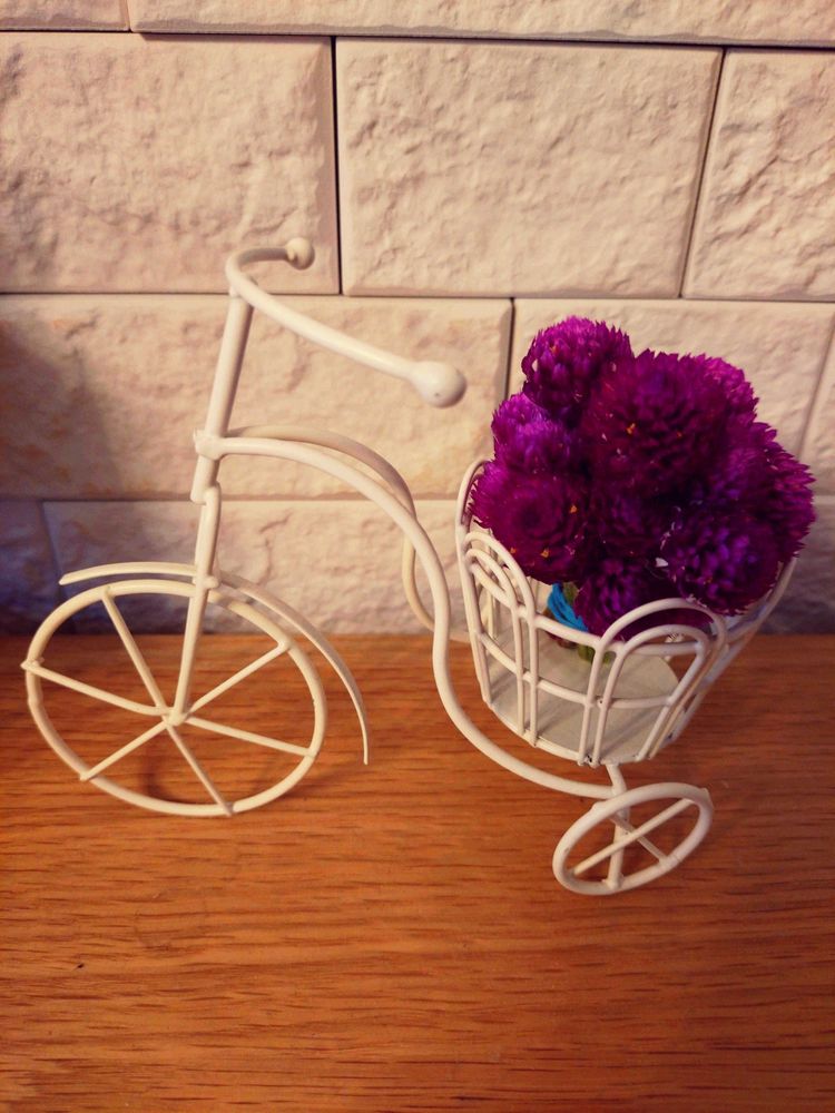 ①まだキレイに咲いてた千日紅の一部を自宅の小物に家族に内緒で飾り付け🤣