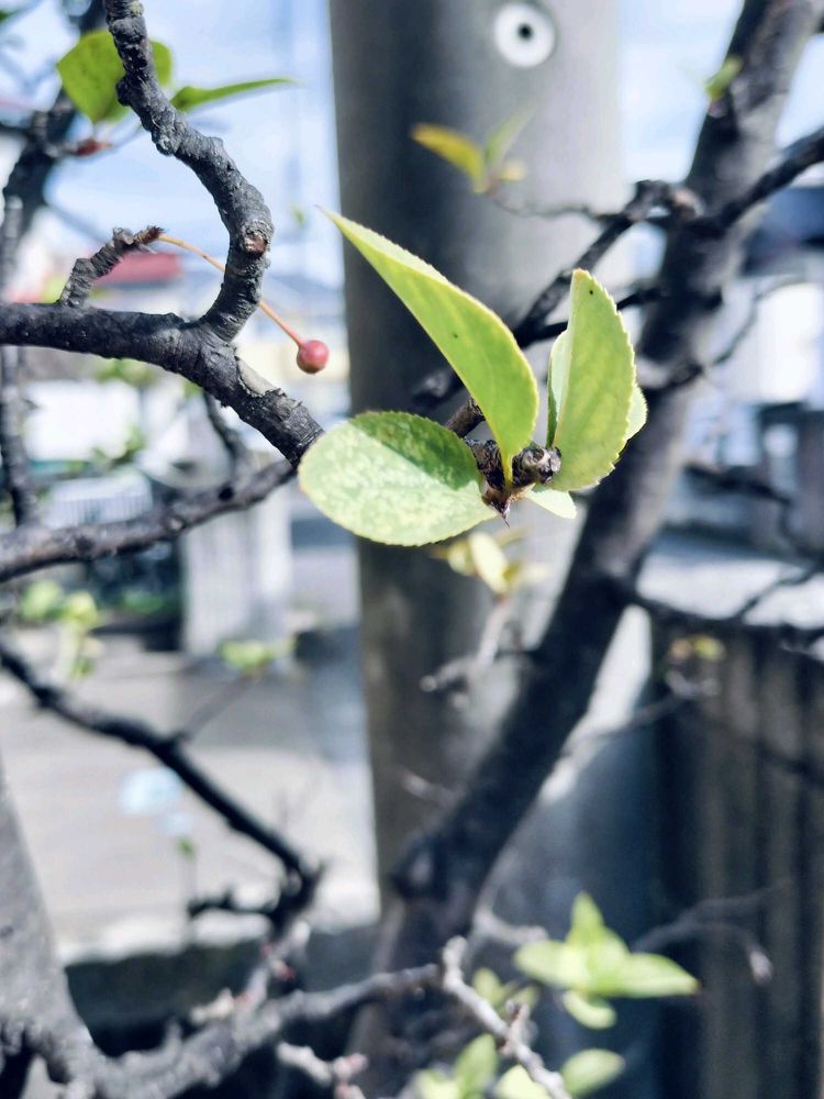 カイドウの実めちゃくちゃ小さいですが色づいてきて可愛いです🍎