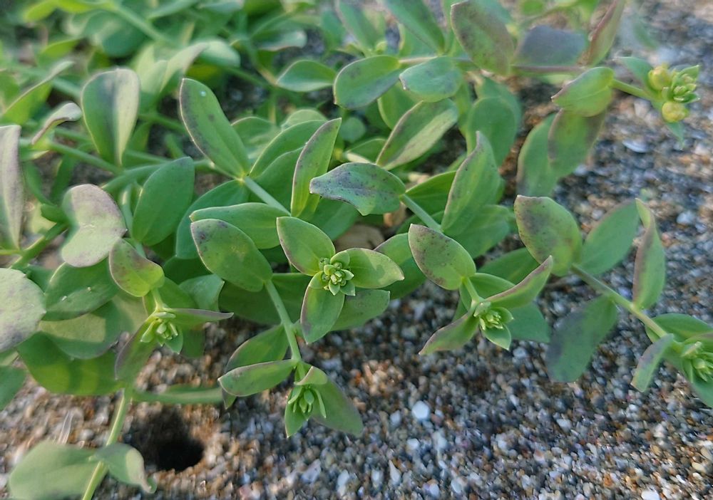 海岸砂浜や、防風林であるクロマツ植林の林床に生え、這うか斜上し長さは20~40cm