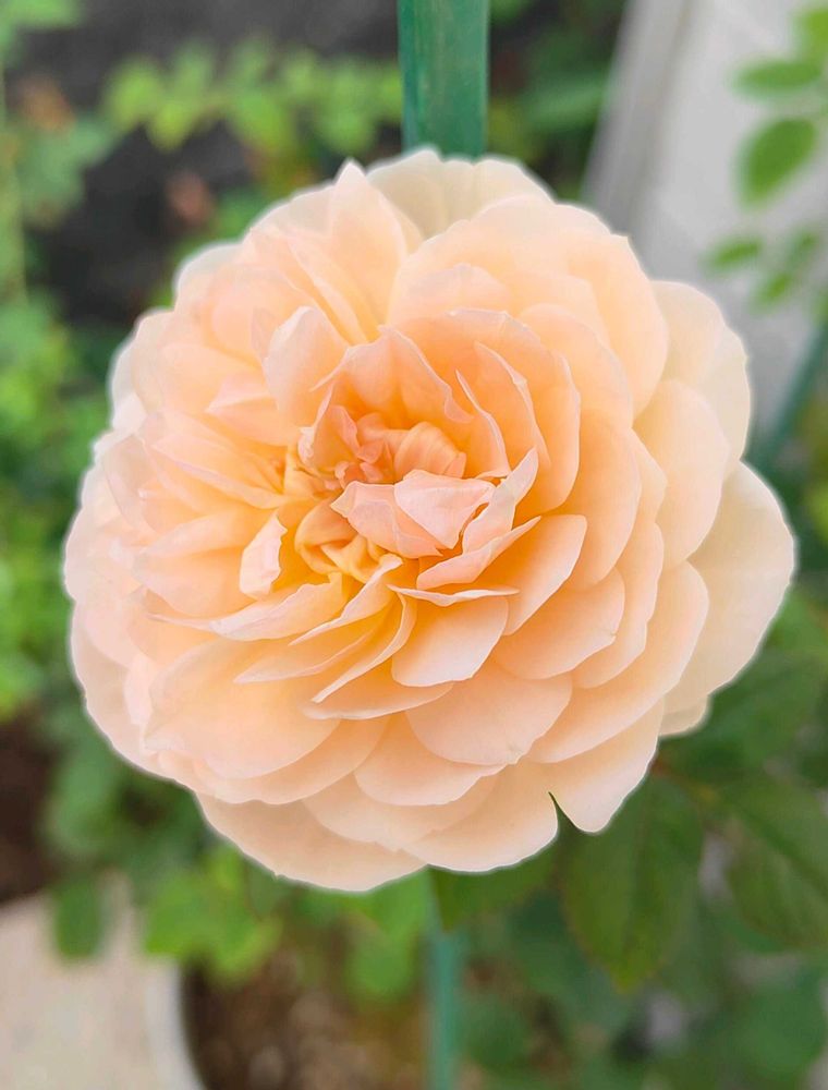 アンブリッジローズは、日差しが苦手なようなので半日陰に移動しました☺さっさと洗濯干してゆっくり眺めよう🩷