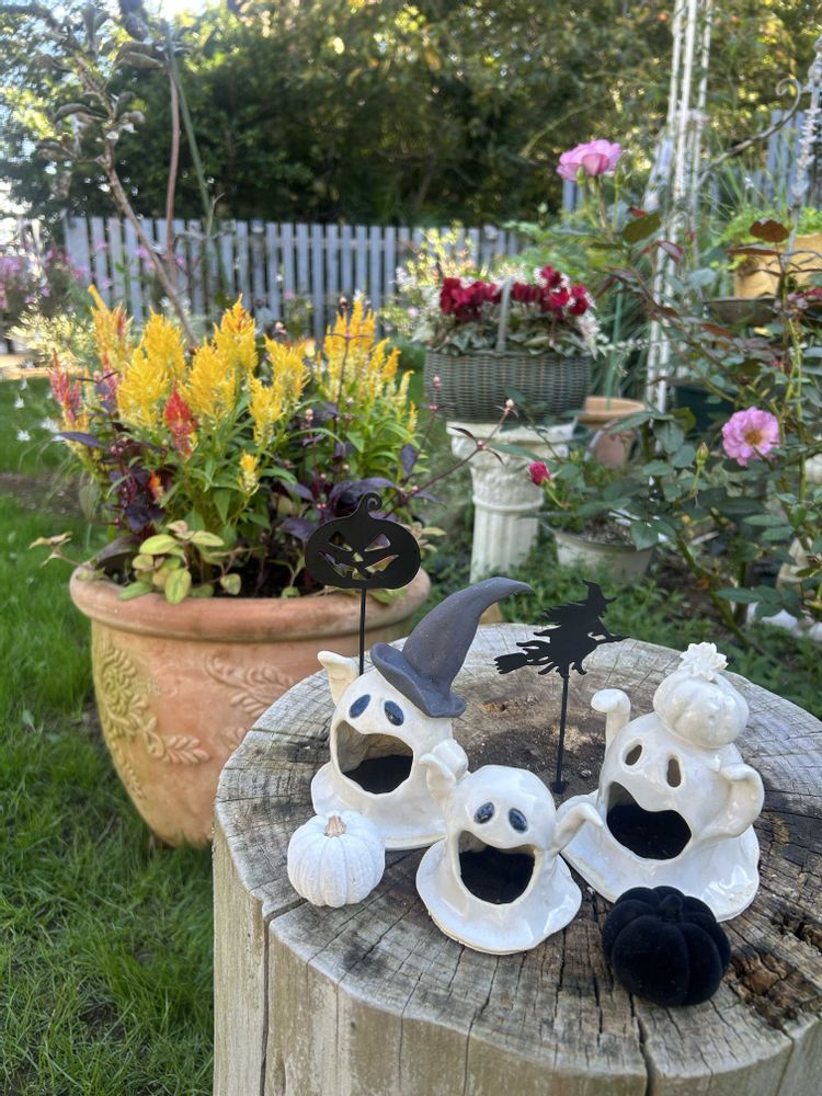 大きく開いた口には蝋燭🕯️が入るので夜は蝋燭の🔥火がゆらゆら揺れて👻更にオバケ感が出ます✨😁