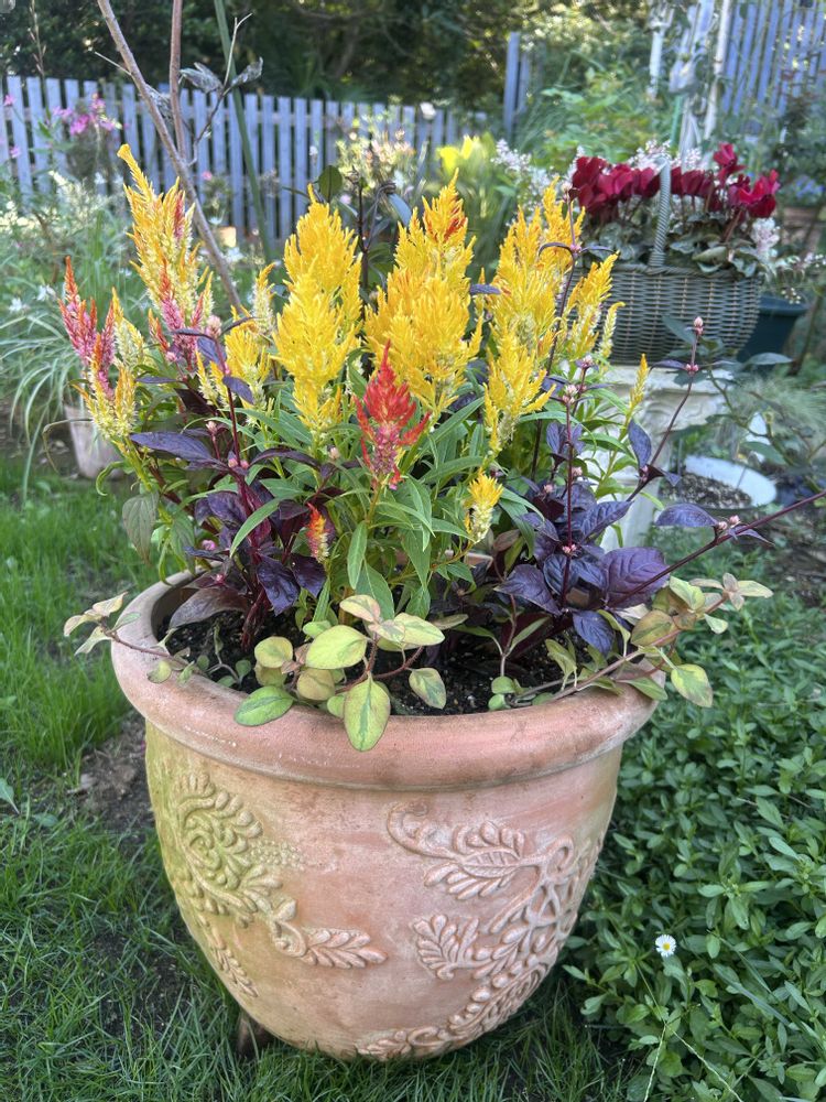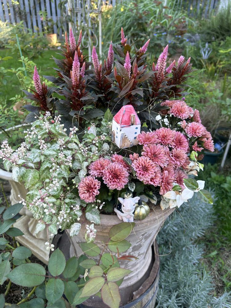 ④少し前に作ったマムとセロシア、数珠サンゴの寄せ植え🌸🌸