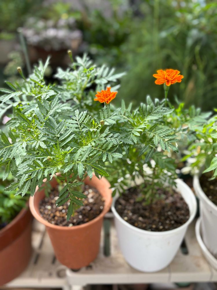 ①8月中旬に挿し芽をしたマリーゴールドがお花を咲かせ始めました🌼