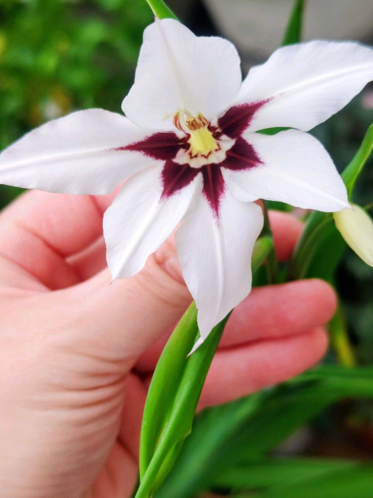 菖蒲みたいな葉をした苗を手に入れ育てていたらこんなお花が咲きました😊