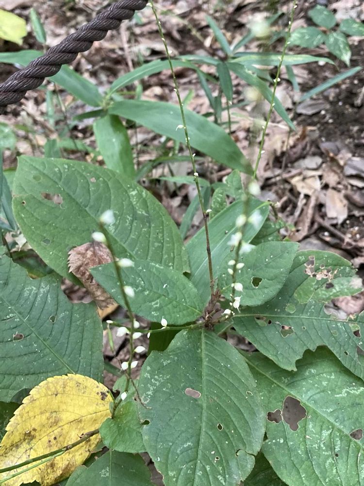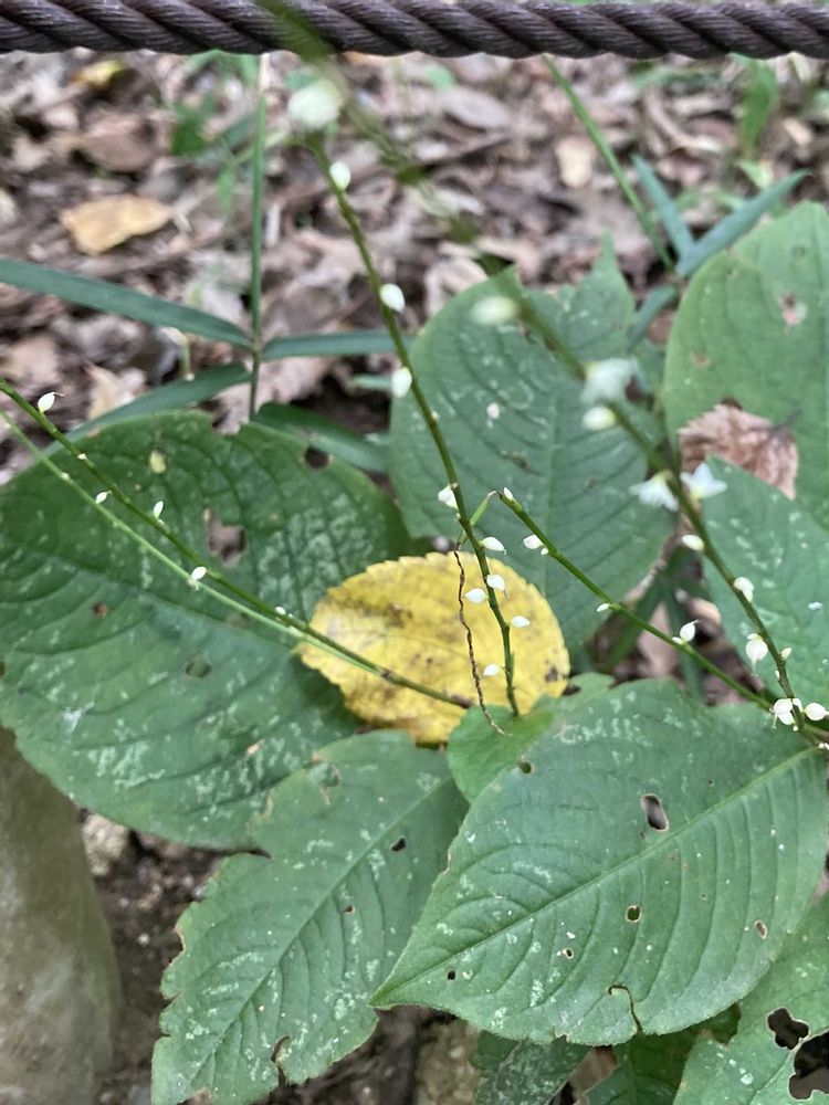 「ギンミズヒキ」を初めて見た。 赤い普通の「ミズヒキ」と混じって咲いていれ紅白の水引でばおめでたいのに残念。