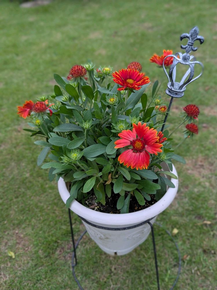 そして3枚目は、ジュズサンゴ絣を使ったステキな寄せ植え見本✨