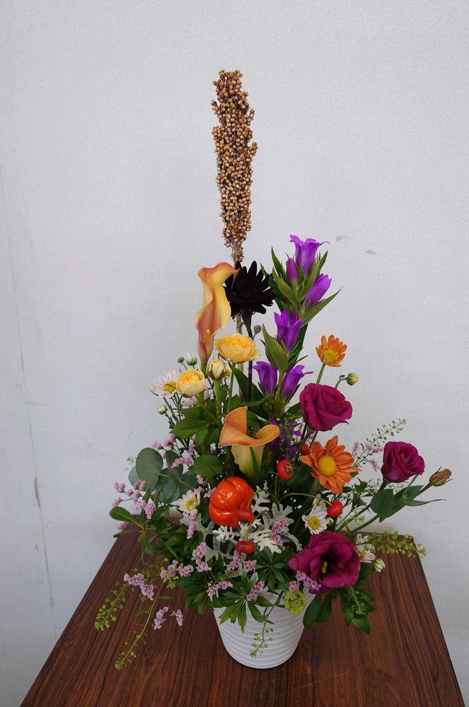 ハロウィン🎃アレンジメント、この麦みたいなお花がポイントかな?素敵です😻