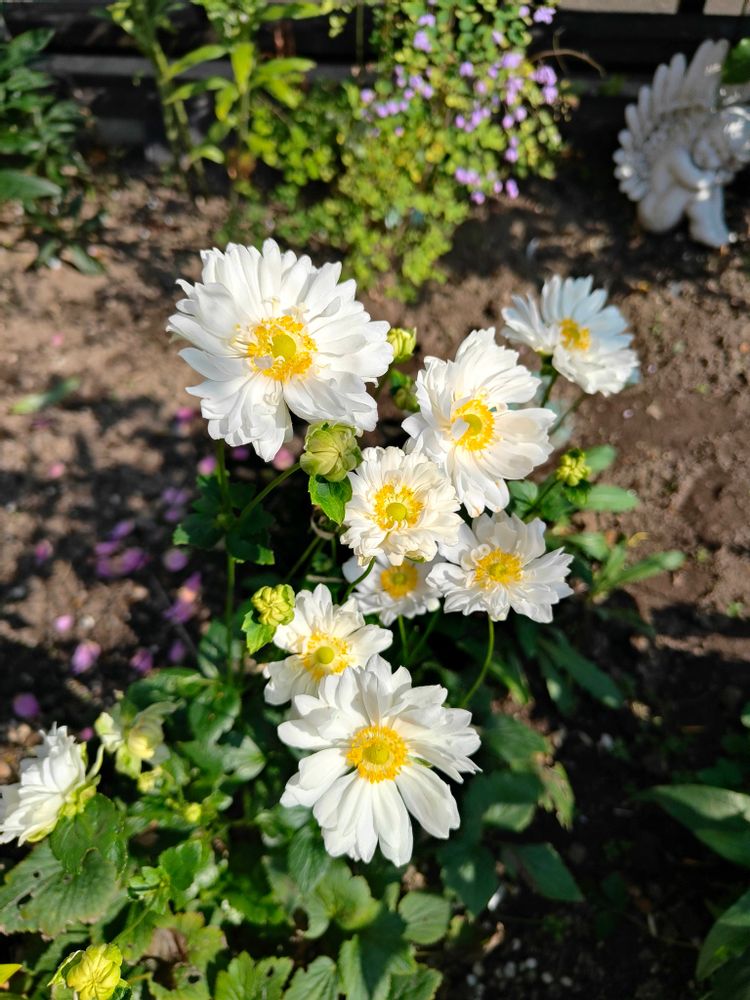 こちらは今年植えた八重咲きの白の秋明菊 まだ小さく日がなかなか当たりません
