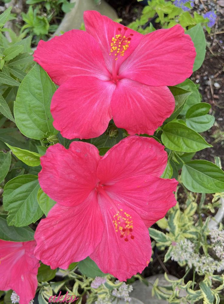 ハイビスカス サニーシティー三花一緒に開花
