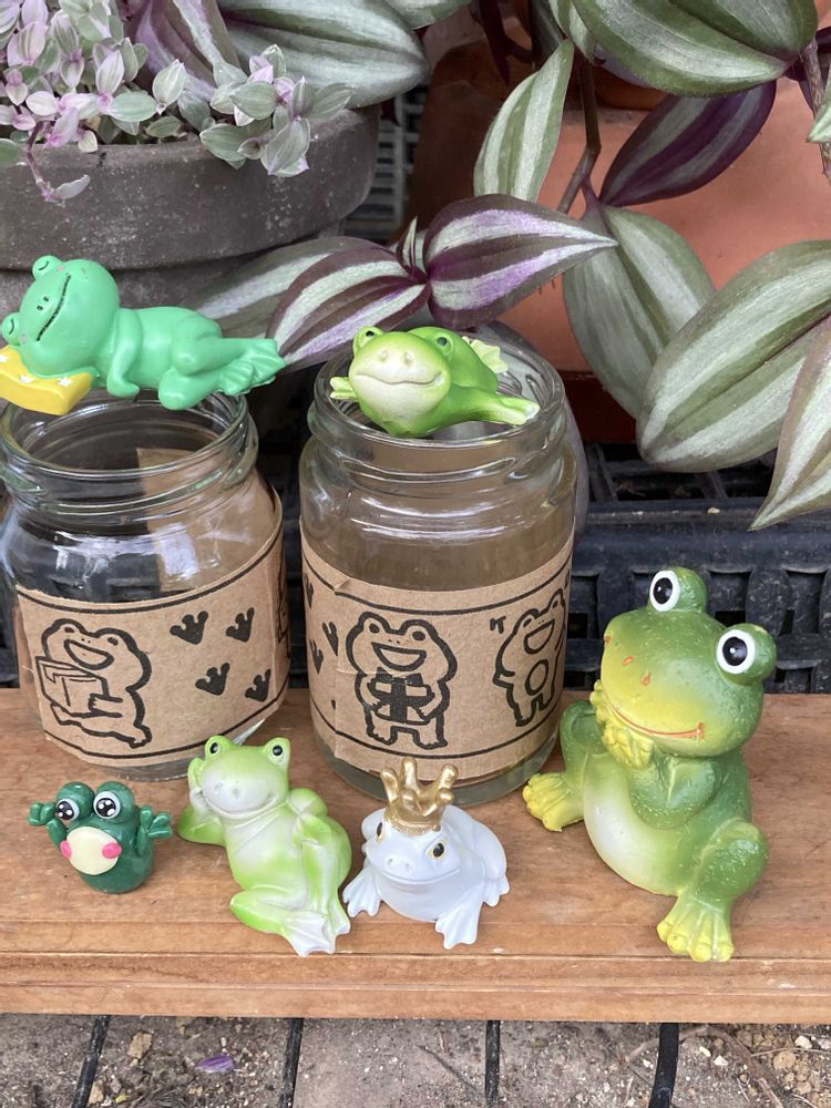 捨てるのがもったいないのでジャムの空き瓶にぺったんこしました🐸