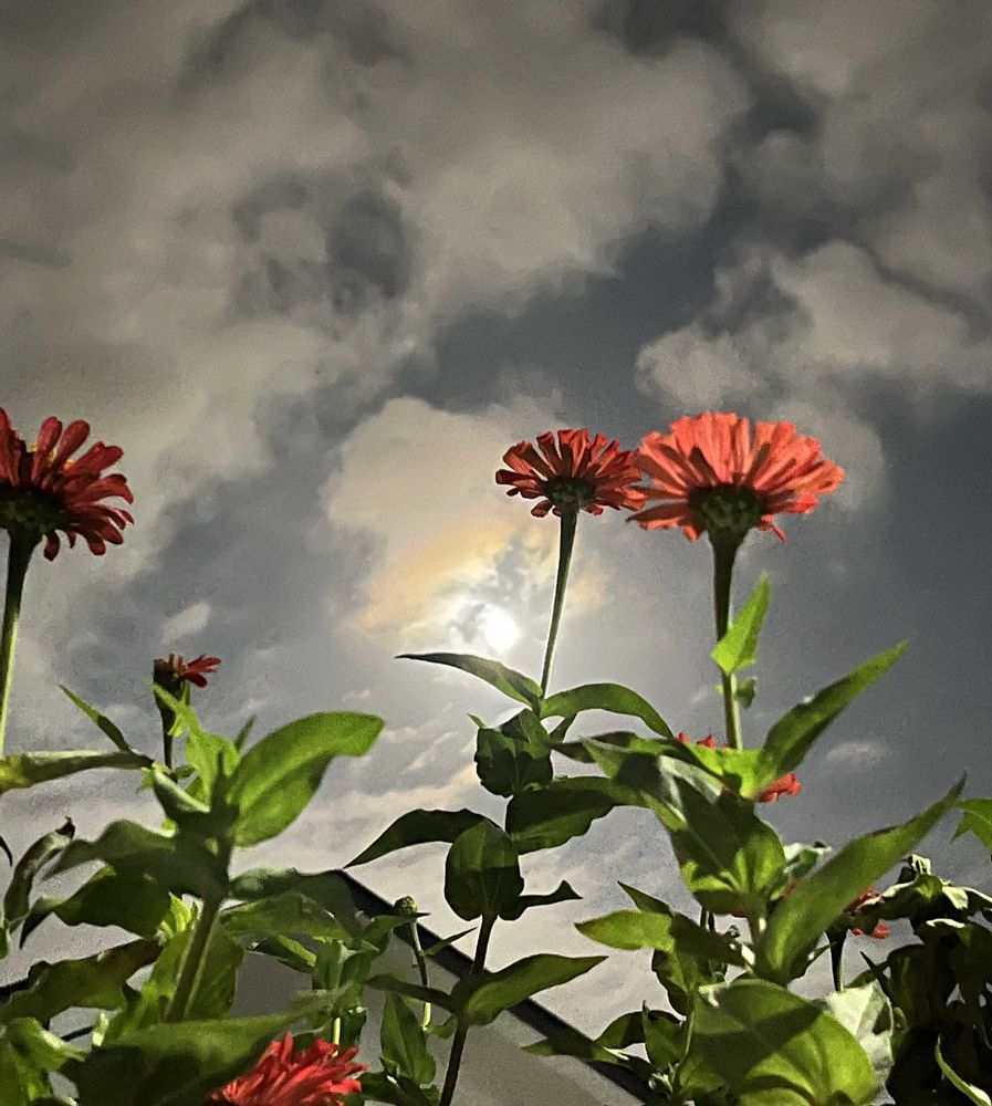 中秋の名月2投目です🌕🌾🎑 今度は、お隣さんのお家に咲いているジニア(百日草)と一緒に写真を撮影しました🌼🎑🌕 百日草とコラボもなかなか良いです😍💕🎑🌕🐇🍠🌰🌾