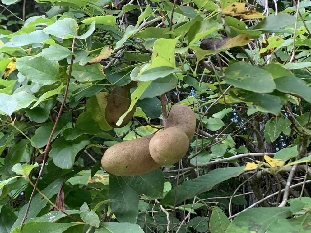 お山のパトロールで以前見つけた場所とは違うところでキンミズヒキを見つけました😀経過観察してる豆梨、やっぱピンポン球くらいですね😅隣のアケビのほうが断然デカいです😅晩ご飯中のカールくん🐕喉に詰まった❗️背中をバンバン叩いて何とか治りました😅💦