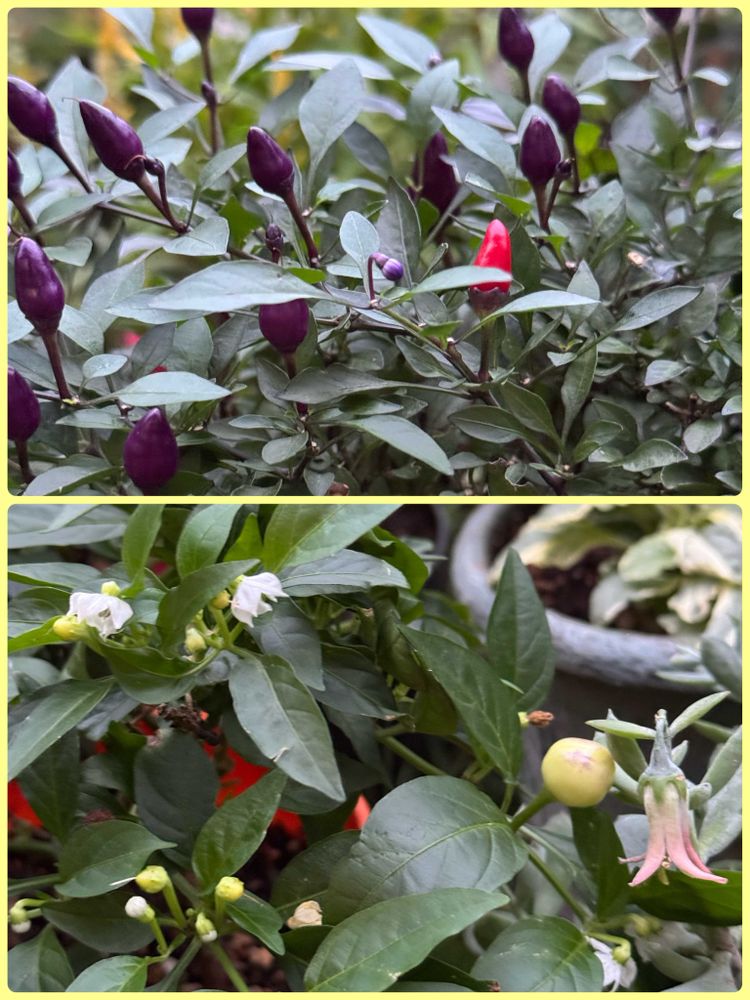 ➁➂観賞用トウガラシ冬越しっ子元気です୧⃛(๑⃙⃘◡̈๑⃙⃘)୨⃛トウガラシ3種類の寄せ植えです🌶🌶🌶