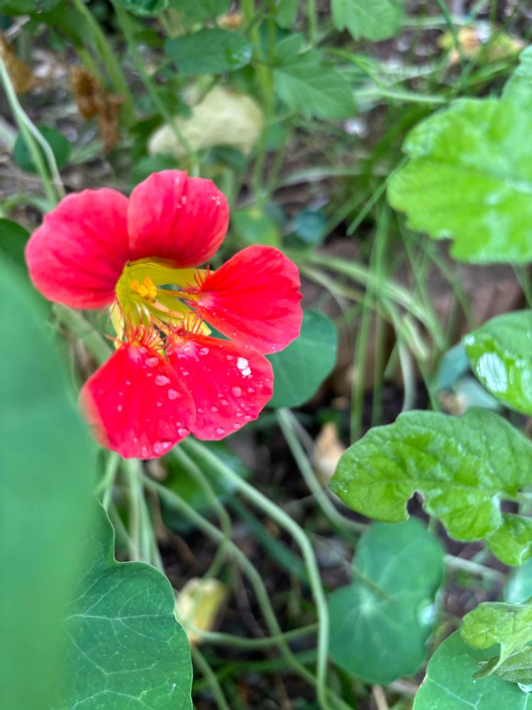 ナスタチウムはきゅうりと茄子とトマトを植えたので、相乗効果有るとNHKでやってたの。それで一緒に植えてます😅