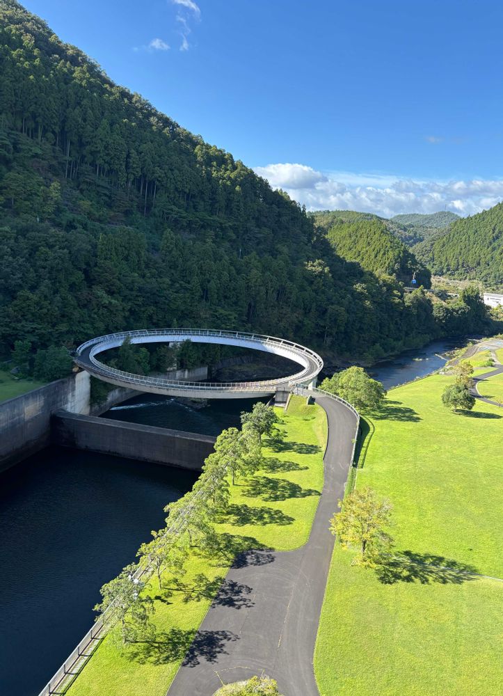 ダムにある施設は円形が多くてダムにある展望デッキ?