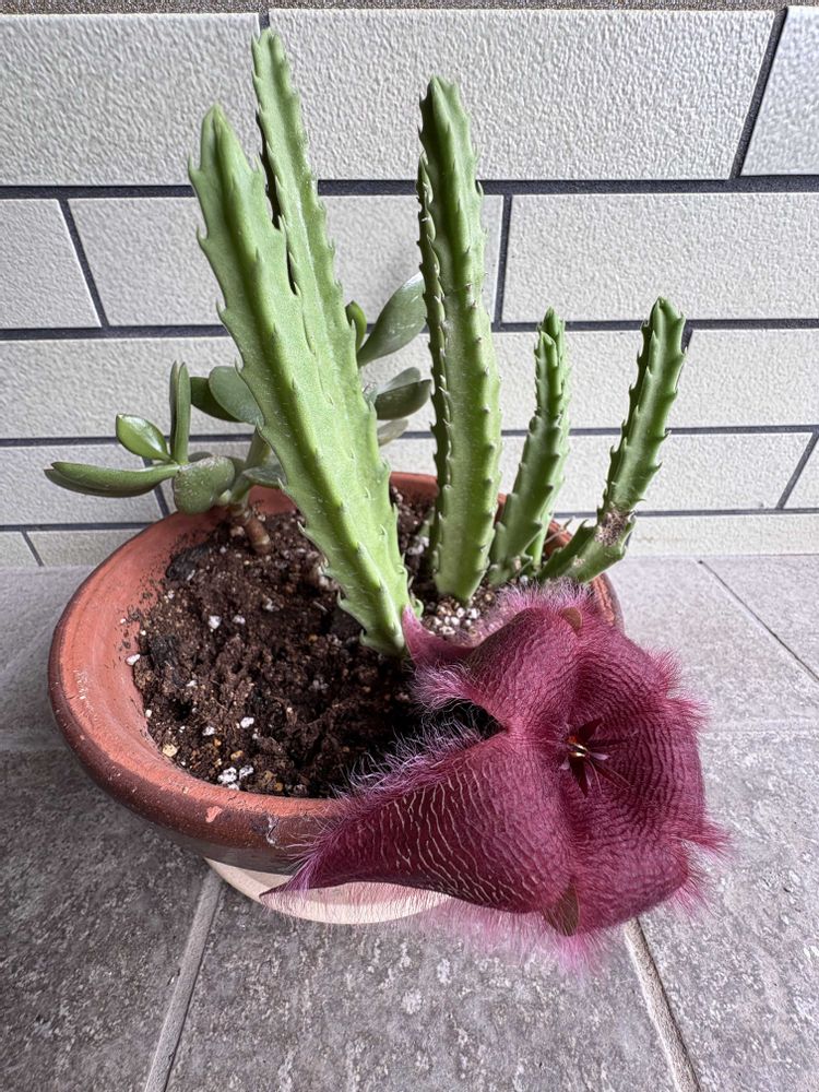 🪴もらってすぐに調べたところ、ガガイモ科(現キョウチクトウ科)という記述を見つけ、毒は無いと書いている人もいればそうでは無い記述もあり、結局怖くて匂いも嗅がないまま、一晩開けて見た時は、鉢からヒトデが這い出して来そうな感じ、、