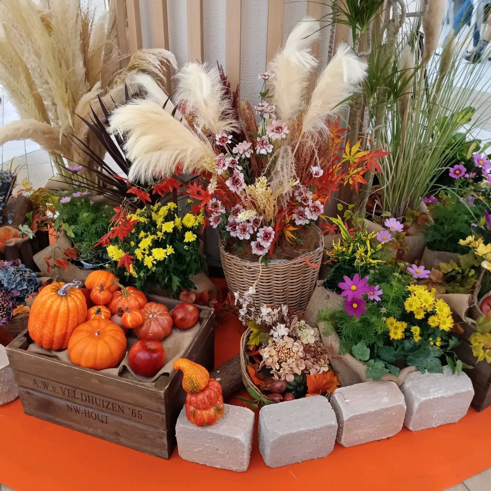 世の中ハロウィン🎃の飾りが可愛いですね~菊とかコスモスも色合いでハロウィン🎃っぽくできるのね~🤔
