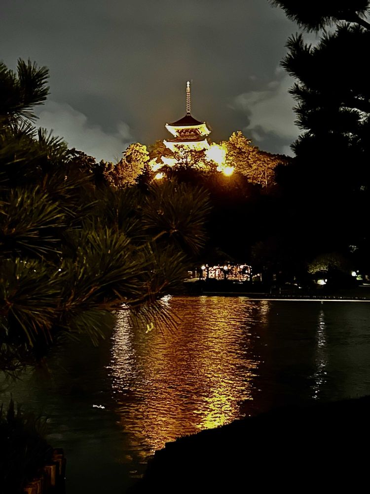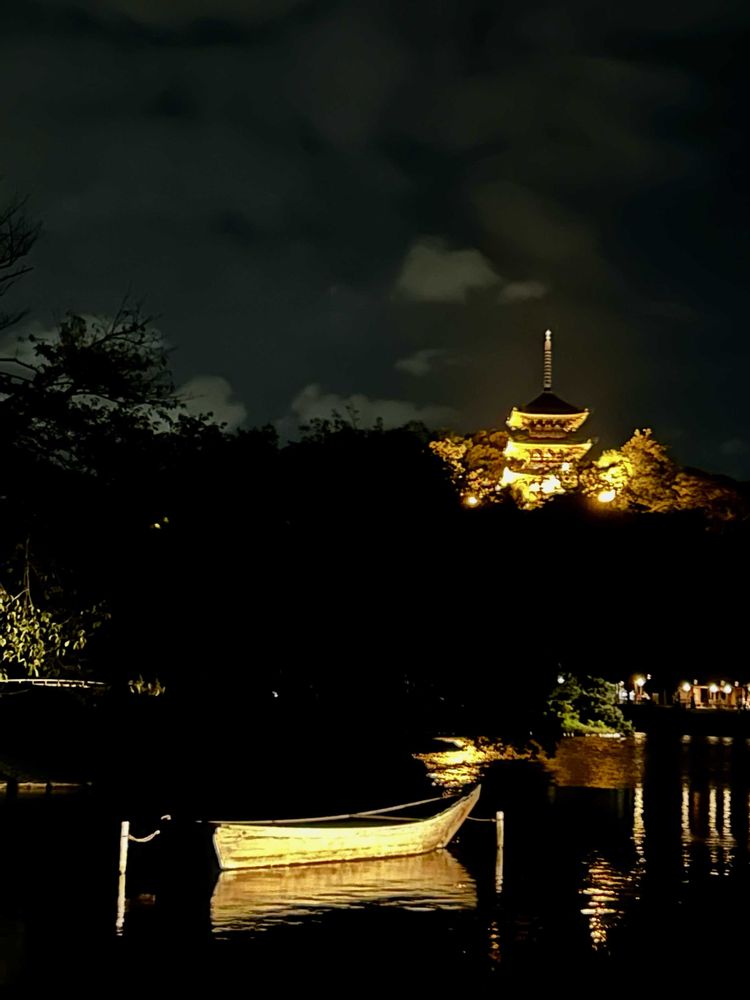 ライトアップの舟や三重塔✨