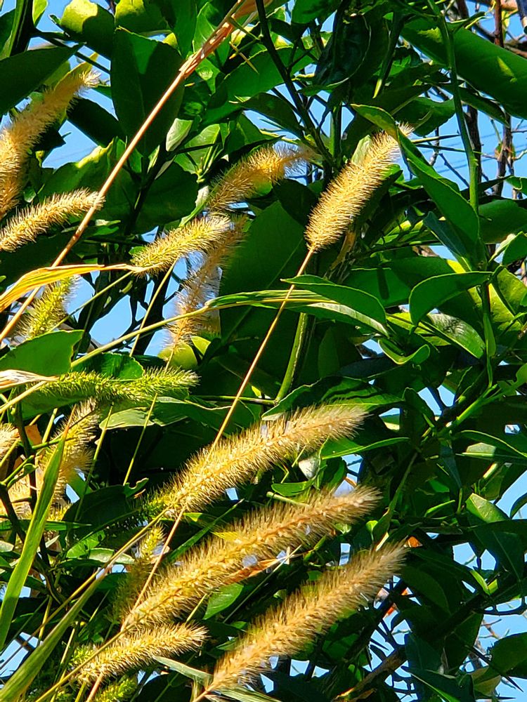 1枚目アメリカンブルー、2枚目イロハモミジ、3枚目ウツギ、4枚目エノコログサ、5枚目オシロイバナです🤗