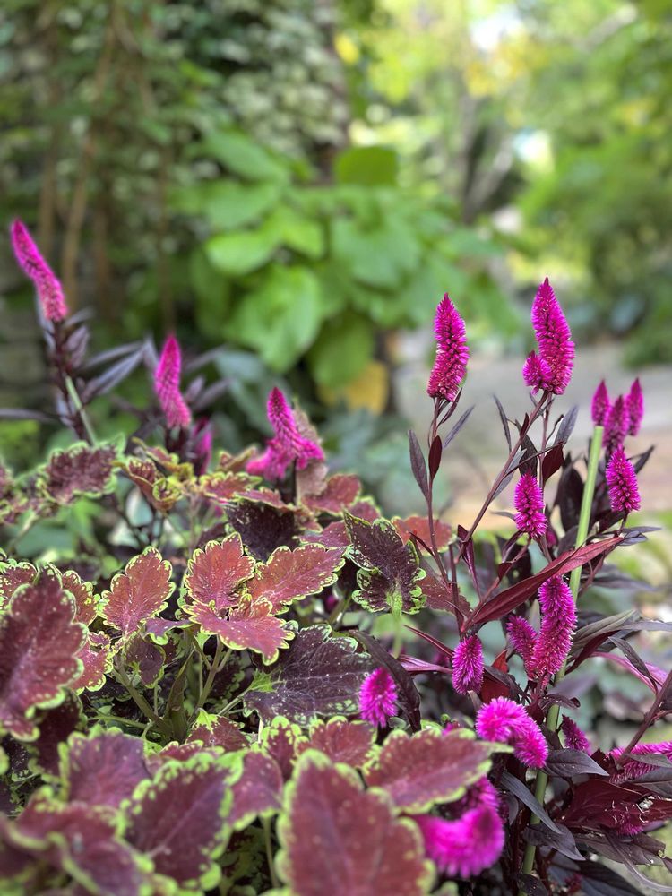 ケイトウとコリウスの組み合わせも素敵