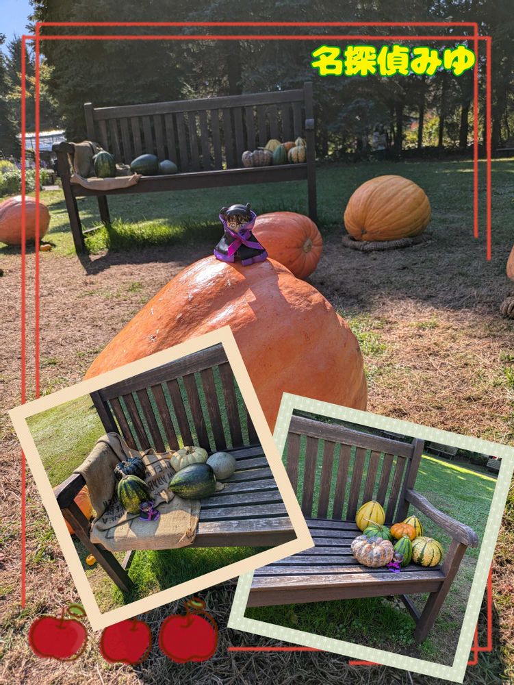 ベンチの周りに大きなカボチャが何個か転がっていてハロウィン近いなーと感じました🎃🥰