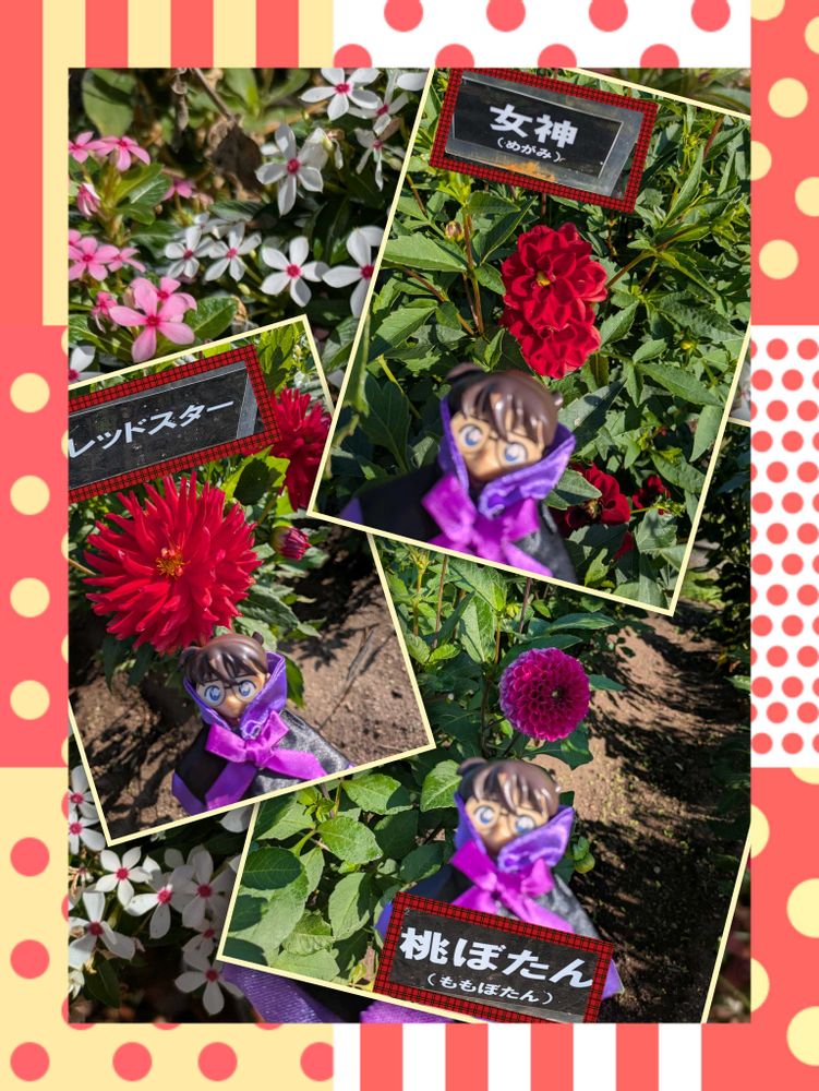 ダリア、サスケママさんはお花をメインに撮ってるけど私のはコナンをメインにして撮ってるから違った雰囲気になるんじゃないかな〜🤗