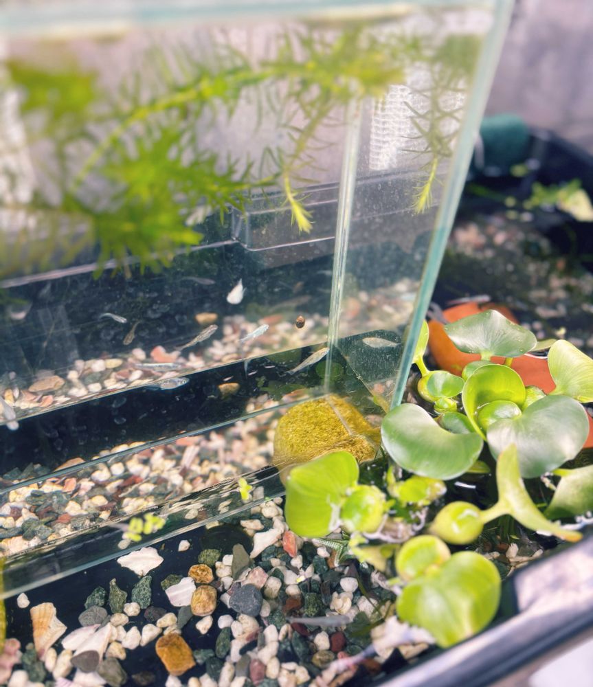 ホテイソウや他の水草がまだきれいだから映える。冬越しさせたい!