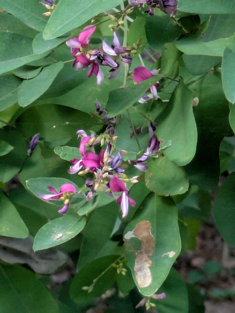 ③④ヤマハギ マメ科 ミヤギノハギに比べ花の付き方がまばらで、枝の先は垂れ下がりません。