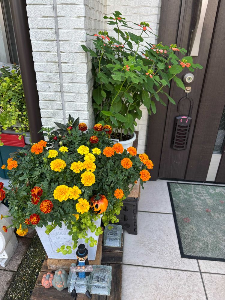 ハロウィンを少し意識して先月寄せ植えしました🎃