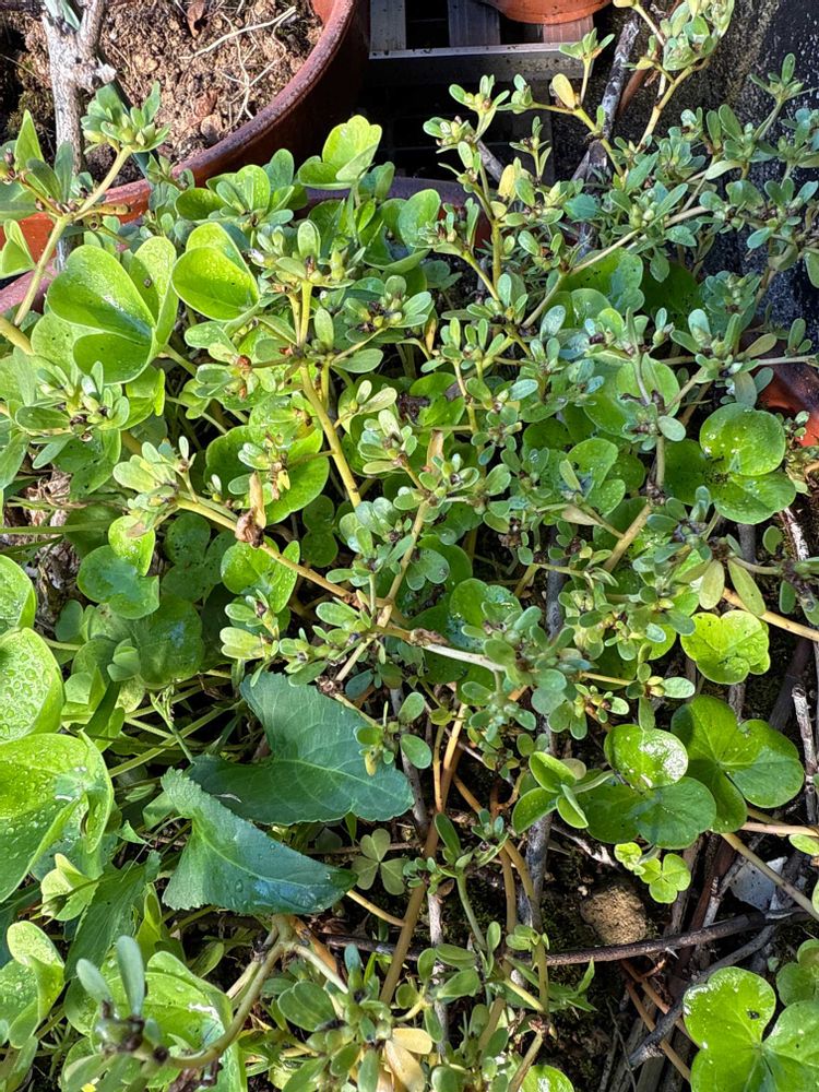 放っておいた鉢にいつの間にか、スベリヒユが占領しようとしてます。