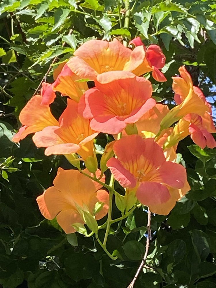 ノウゼンカズラ🧡光の当たり方が綺麗ね〜😃