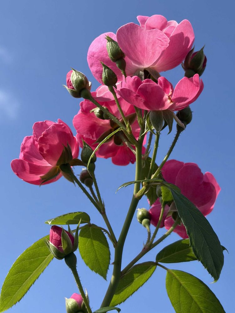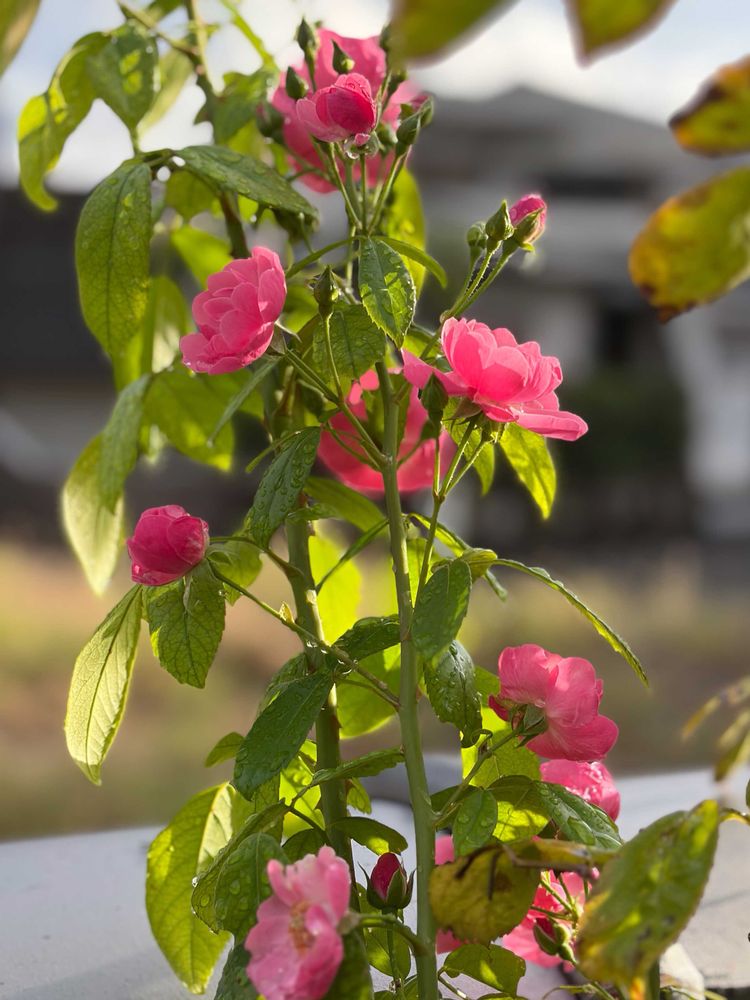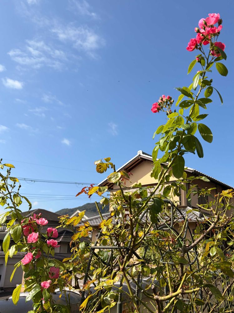 お庭の「アンジェラ」🌹さん剪定せずにほっておいたら上に上に伸びて咲いてます☺️
