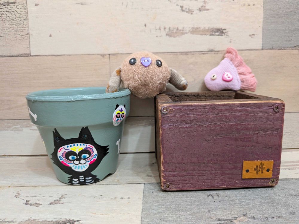 リメ鉢は、防水加工はしていますが、雨ざらしにはしないで下さいね。