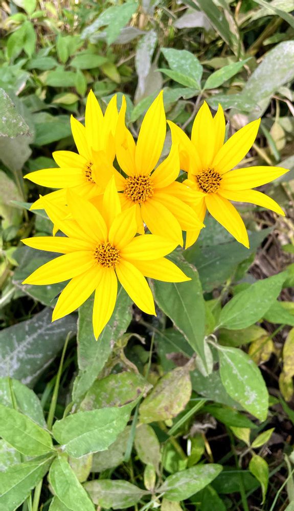 この花は道路から少し下がった場所に生えていたので、花を上から撮れましたが、成長したキクイモは3m近くなるんですよ。🤗