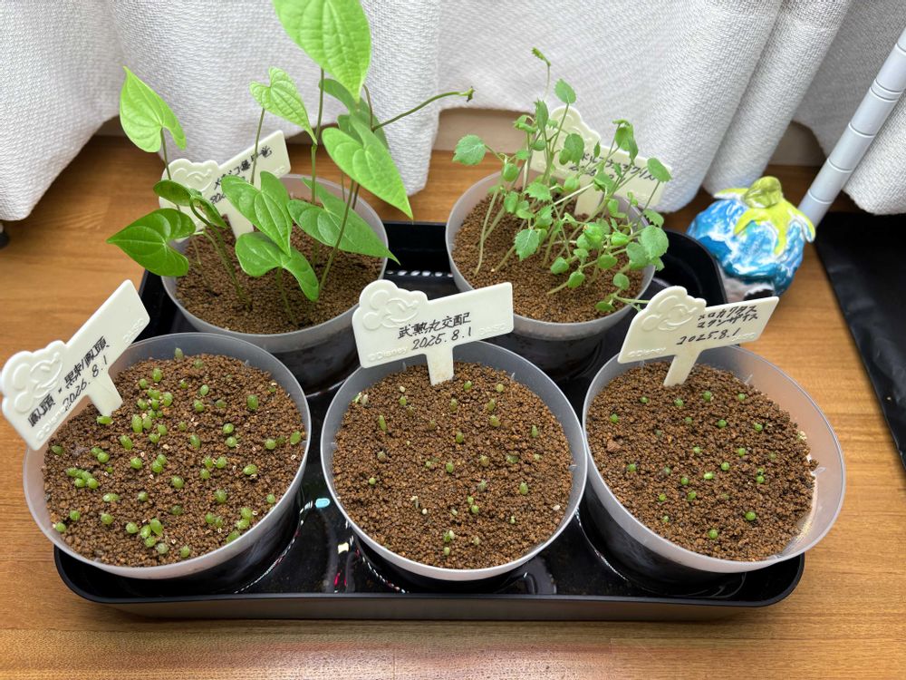 2024年3月22日に交配 2024年7月12日に結実した種を採取 2024年8月14日に種まき 2024年9月に発芽 その後、植え替えをして現在2025年7月に至る 今後の成長はアプリで記録 花が咲くまで継続