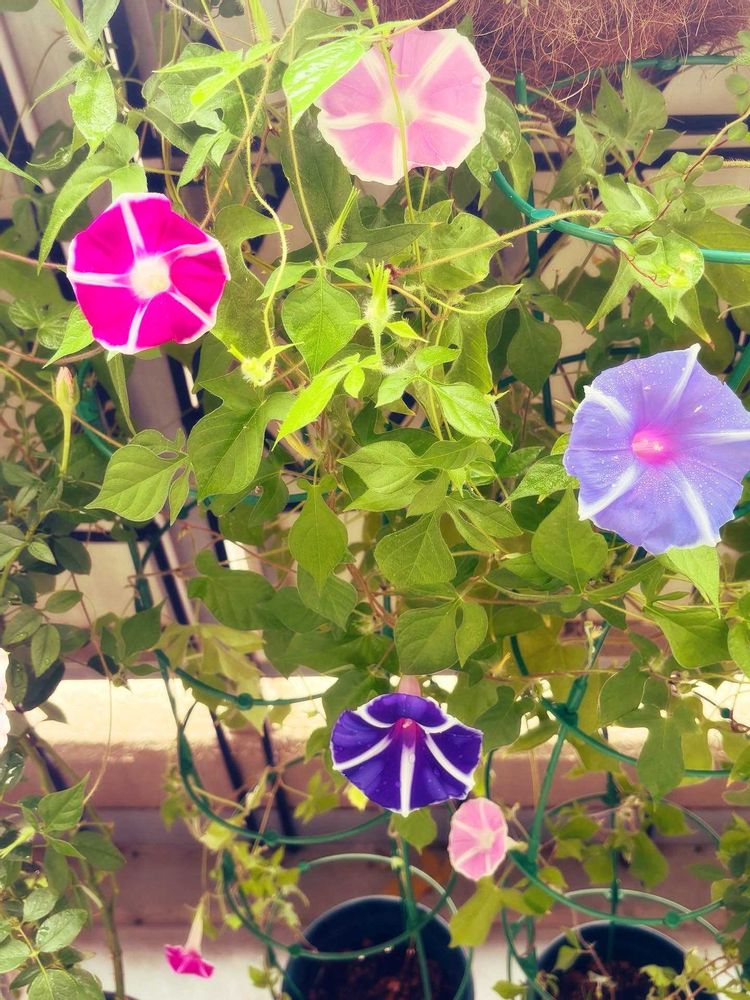 6月頃に種蒔きをした曜白の朝顔。色とりどりに咲いて見せてくれました❣️