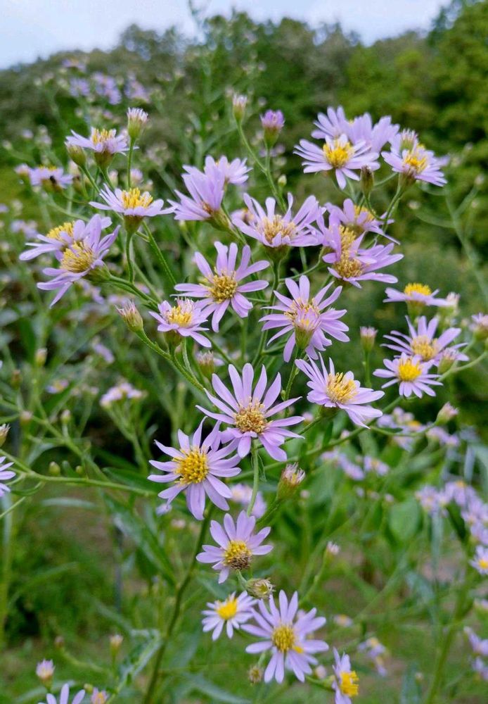 キク科シオン属の多年草。中国、朝鮮半島、シベリアなどが原産地の野菊の一種。古い時代に薬用植物として朝鮮か中国から渡来したが、花が美しいので平安時代から観賞用に栽培され、枕草子や源氏物語にも記載がある。中国地方と九州の山地に自生するが、栽培されていたものが逸脱して野生化したものと考えられる。高さは1〜2m、茎にはまばらに剛毛がある。根生葉は花の頃は枯れてないが、大型のへら状長楕円形で、大きいものは長さ65㎝にもなる。茎葉は長さ20〜35㎝、幅6〜10㎝の卵形または長楕円形で、上部のものほど小さく、幅も狭い。花期は8~10月。頭花は直径3〜3.5㎝。舌状花は1列で淡青紫色。花柄には短毛が密生する。総苞は長さ約7㎜の半球形。総苞片は3列で先は尖り、縁は乾膜質。外片は少し短い。痩果は長さ約3㎜のやや扁平な倒卵状長楕円形で黒紫色を帯び、毛がある。冠毛は汚白色または赤みを帯び、長さ6㎜ほど。