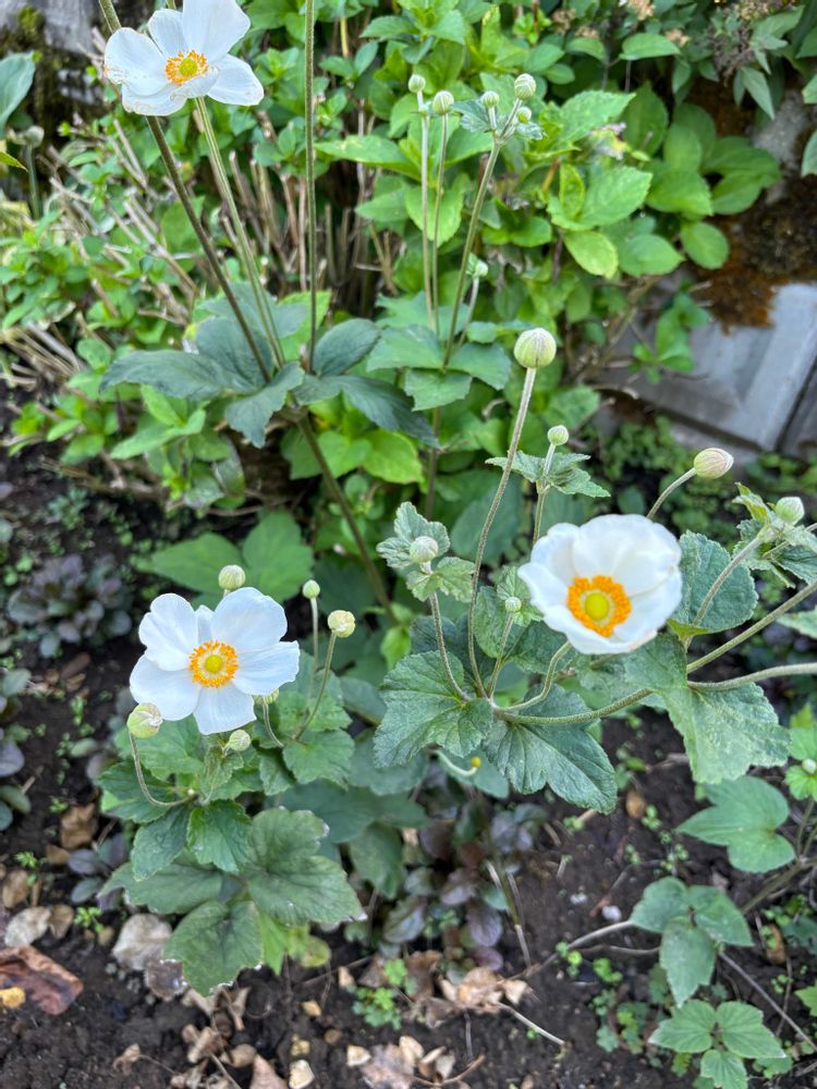 秋明菊白い花びらに黄色がとても可愛いですね。今年は咲くのが遅かったのですね💦夏の影響もあったでしょうか❓